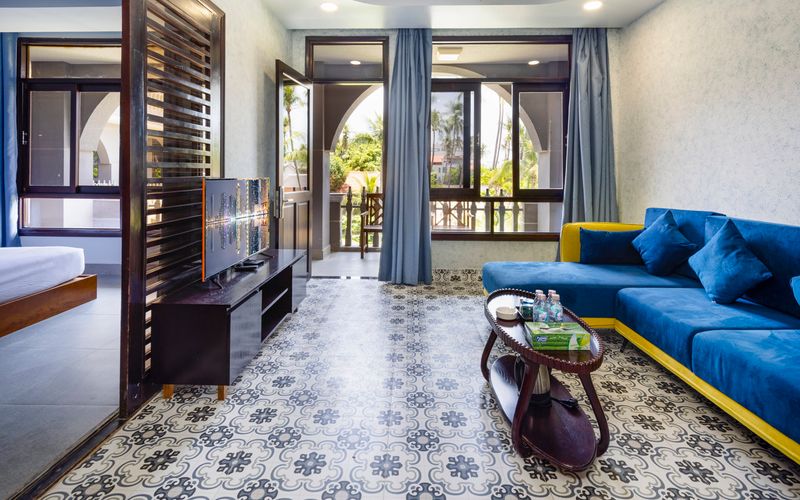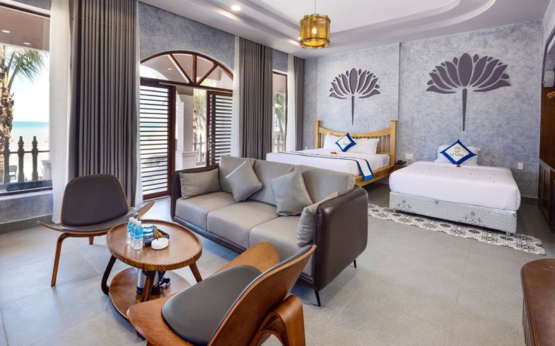 Premium Beach Front - Triple Diện tích: 75m2 Hướng vườn Phòng dành cho 4 người lớn và 2 bé dưới 6 tuổi Phòng có 1 giường đôi và 01 giường đơn