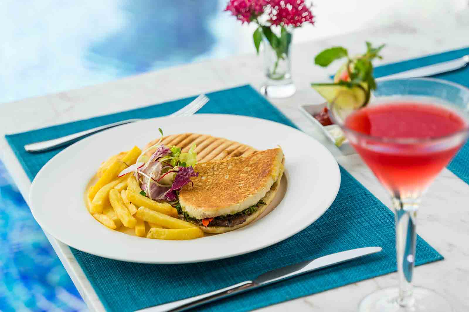 Oasis Pool Bar là nơi lý tưởng để thư giãn trong ngày với đồ uống mát lạnh và các món ăn hấp dẫn ngay tại hồ bơi sát bãi biển. Thực đơn lấy cảm hứng từ Địa Trung Hải với những sản phẩm tươi ngon và tốt nhất nhằm đảm bảo sự hài lòng của thực khách.