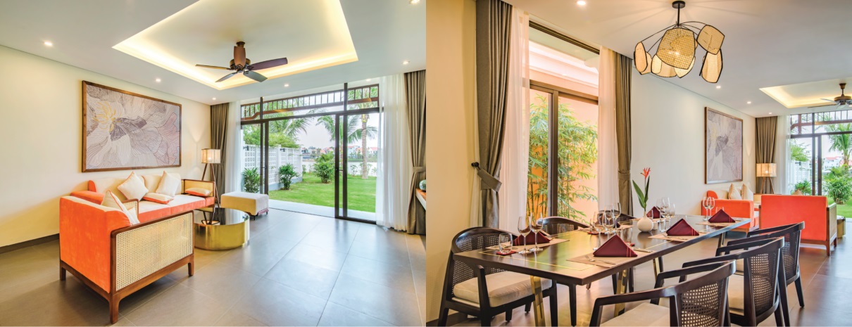 Three-Bedroom Villa Diện tích: 130m2 Hướng Sông Phòng dành cho 6 người Phòng có 2 giường King và 2 giường đơn