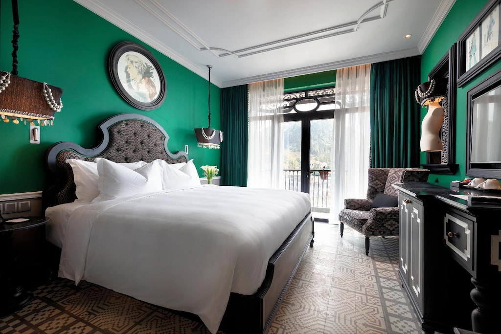 Lấy cảm hứng từ các dân tộc thiểu số ở Sapa và thời trang May Đo Cao Cấp (Haute Couture) của Pháp, tất cả các phòng tại đây đều có ban công, máy điều hòa, truyền hình vệ tinh màn hình phẳng, ấm đun nước, bể sục, đồ vệ sinh cá nhân miễn phí, tủ quần áo, phòng tắm riêng và khu vực ghế ngồi. Một số phòng cho tầm nhìn ra khu vườn.