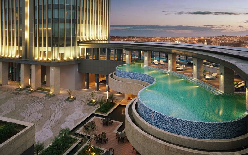 Bể bơi: Cùng với tầm nhìn toàn thành phố xinh đẹp trên cao, hệ thống bể bơi vô cực bốn mùa là một trải nghiệm lí thú khi đến với Melia Vinpearl Ha Tinh.