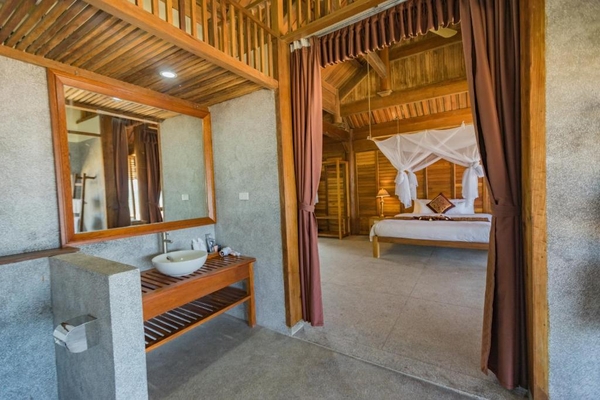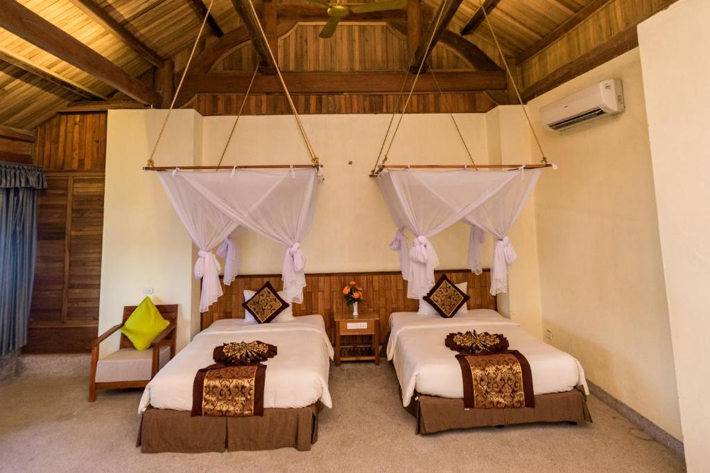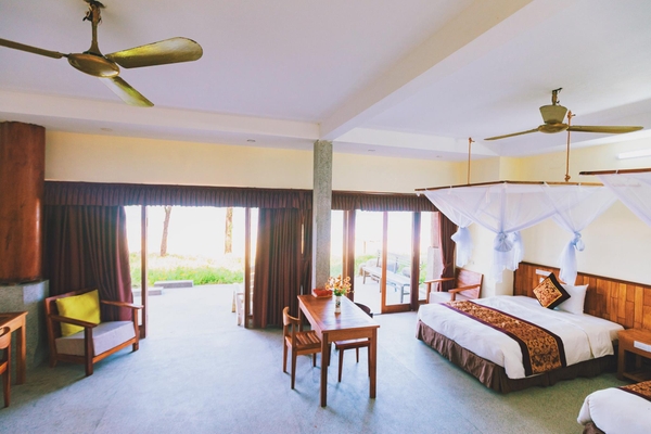 Deluxe King/Twin Mountain View Diện tích: 32m2 Hướng vườn, núi Phòng dành cho 02 người lớn và 2 bé dưới 6 tuổi Có 1 giường đôi cỡ lỡn hoặc so 2 giường đơn ( Tầng 1 hoặc tầng 2)