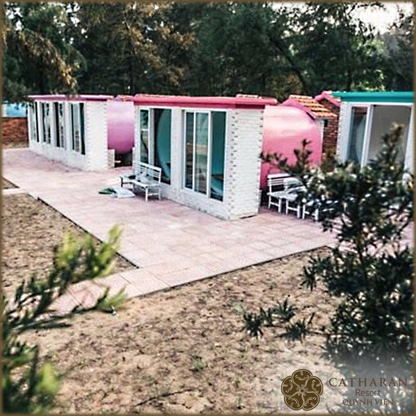 Quỳnh Viên Resort có tất cả 12 căn Villa với tổng cộng 48 phòng được xây dựng mô phỏng nhà sàn truyền thống rất độc đáo. Trước mỗi Villa đều có thảm cỏ rộng, xích đu hoặc ghế tắm nắng hướng ra biển ngắm cảnh rất nên thơ hiền hòa.